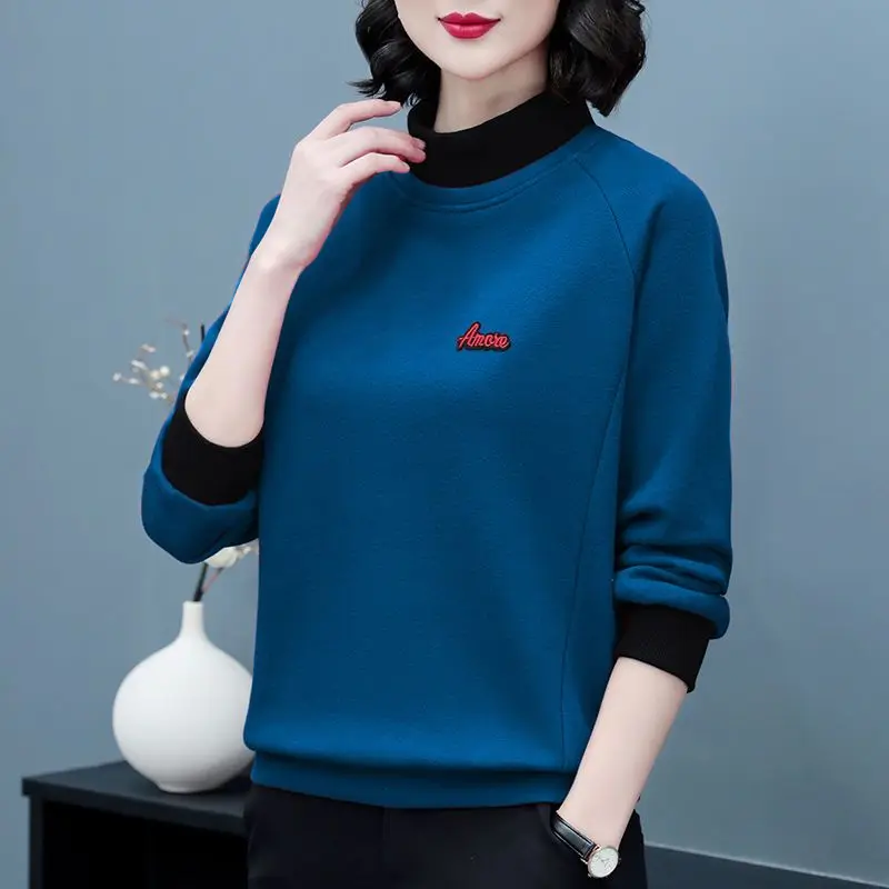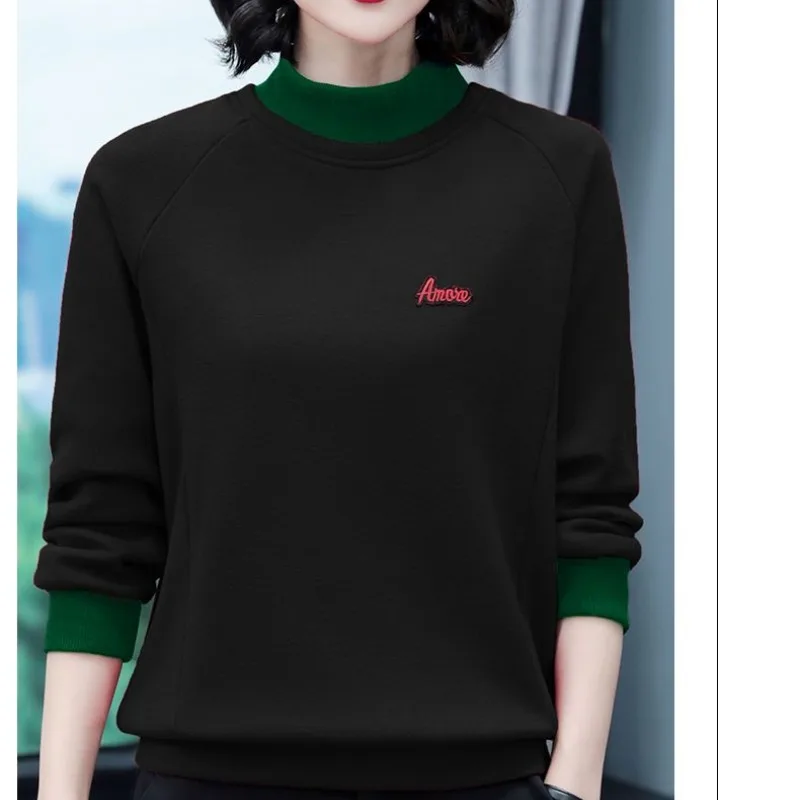 2023 Autumn and Winter Pure Cotton Women's Half High Neck Sweater Casual Elegant Loose Pullover Solid Color High Street Tops - TopDealBox