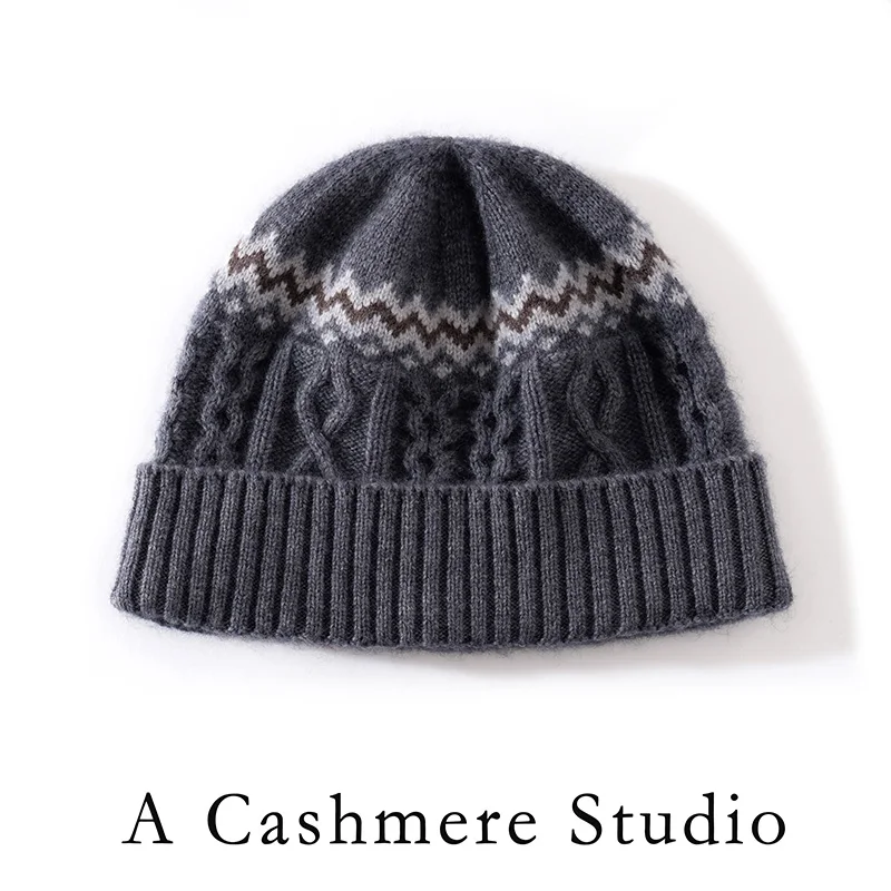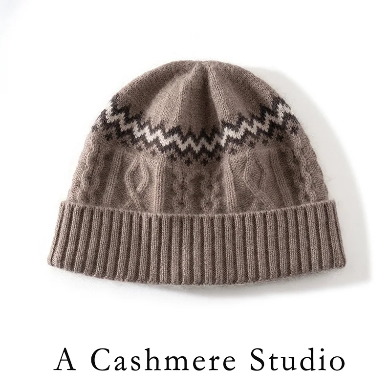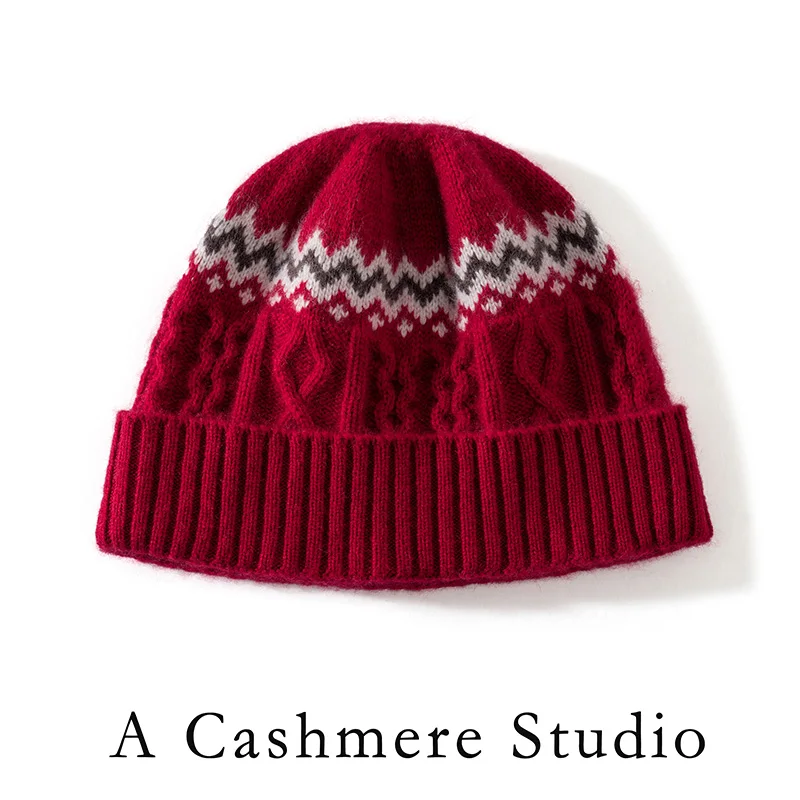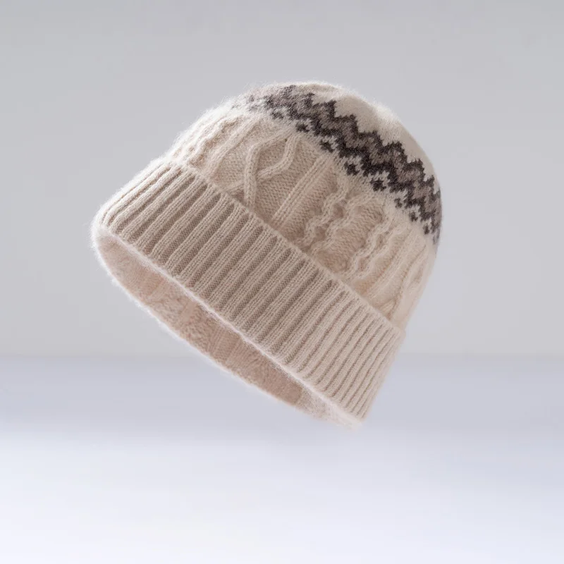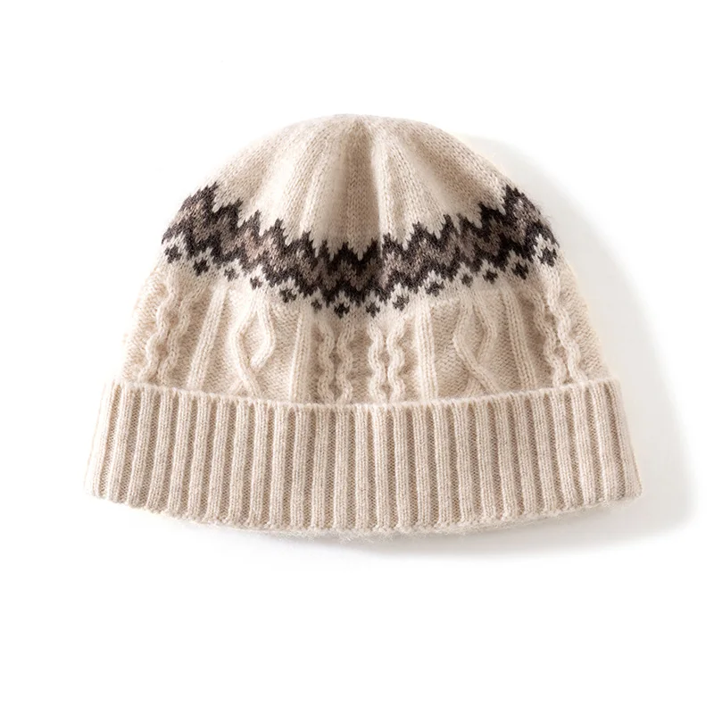2025 New Luxury Women's Cashmere Beanie Classic Warm Headgear for Winter Elegant Color Block Jacquard Fashion Casual Knit Cap - TopDealBox