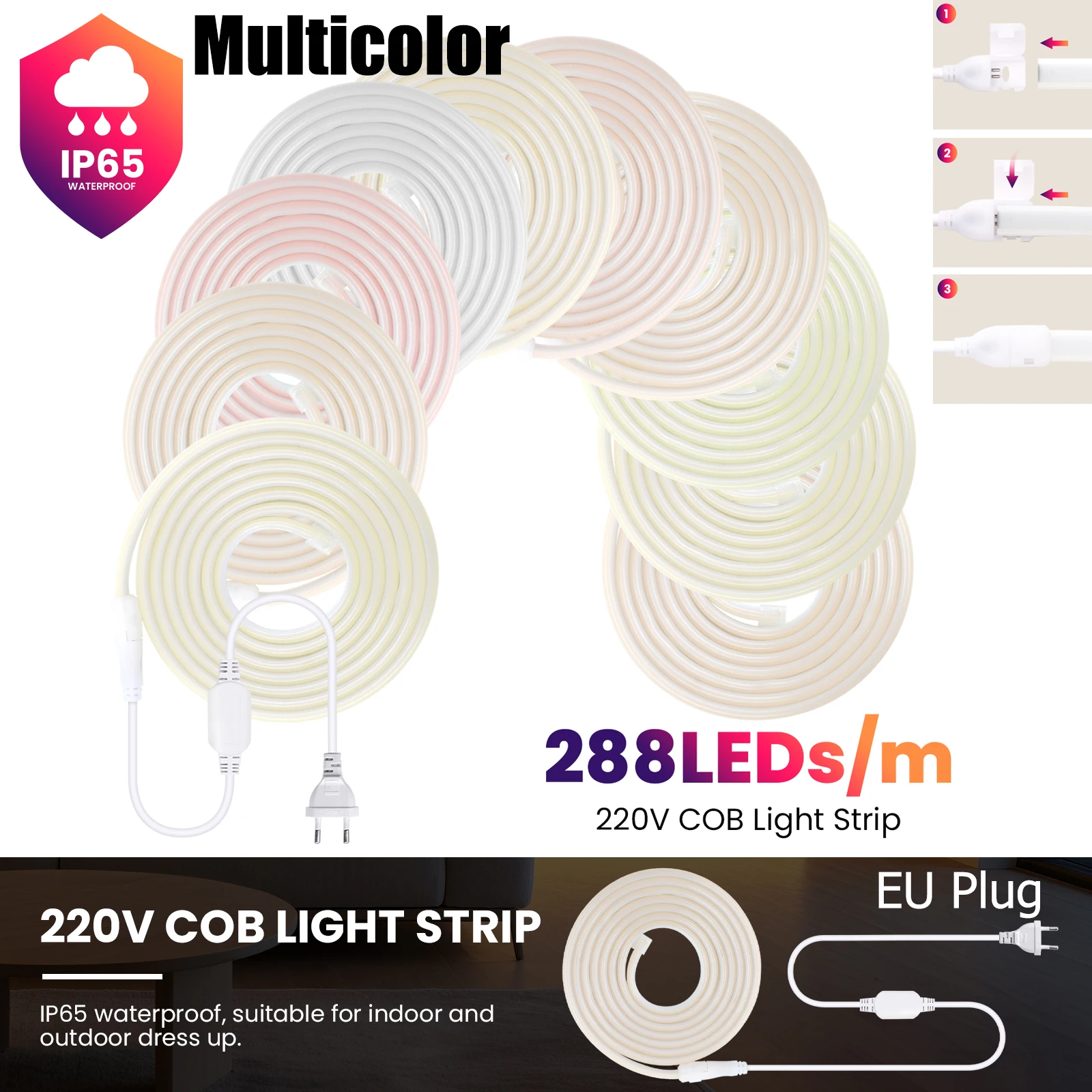 ♡Quick viewDimmable 220V COB Led Strip Adhesive Tape Ribbon 288LEDs/M IP65 Waterproof Outdoor Neon Lights for Kitchen Room Garden Lighting110703 VNDHot★★★★★★4.5