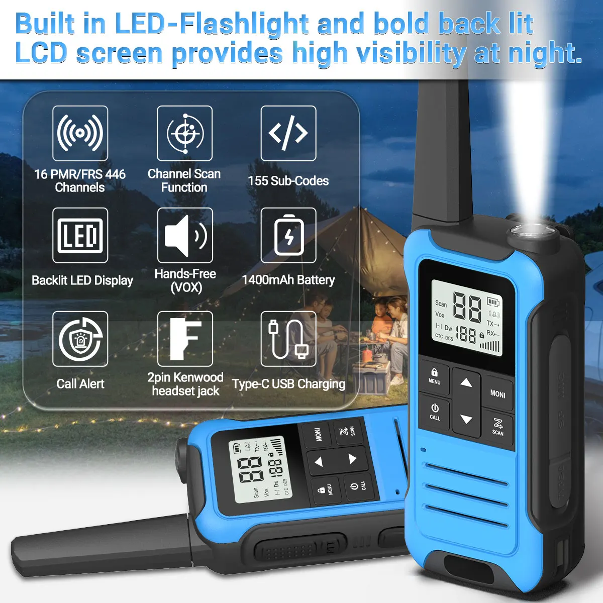 ♡Quick view2pcs Baofeng F22 PMR446 FRS Walkie Talkie Licence-free Portable LCD Display VOX Two-way Radio Support Type-C Charger for Hunting950607 VNDHot★★★★★★4.7