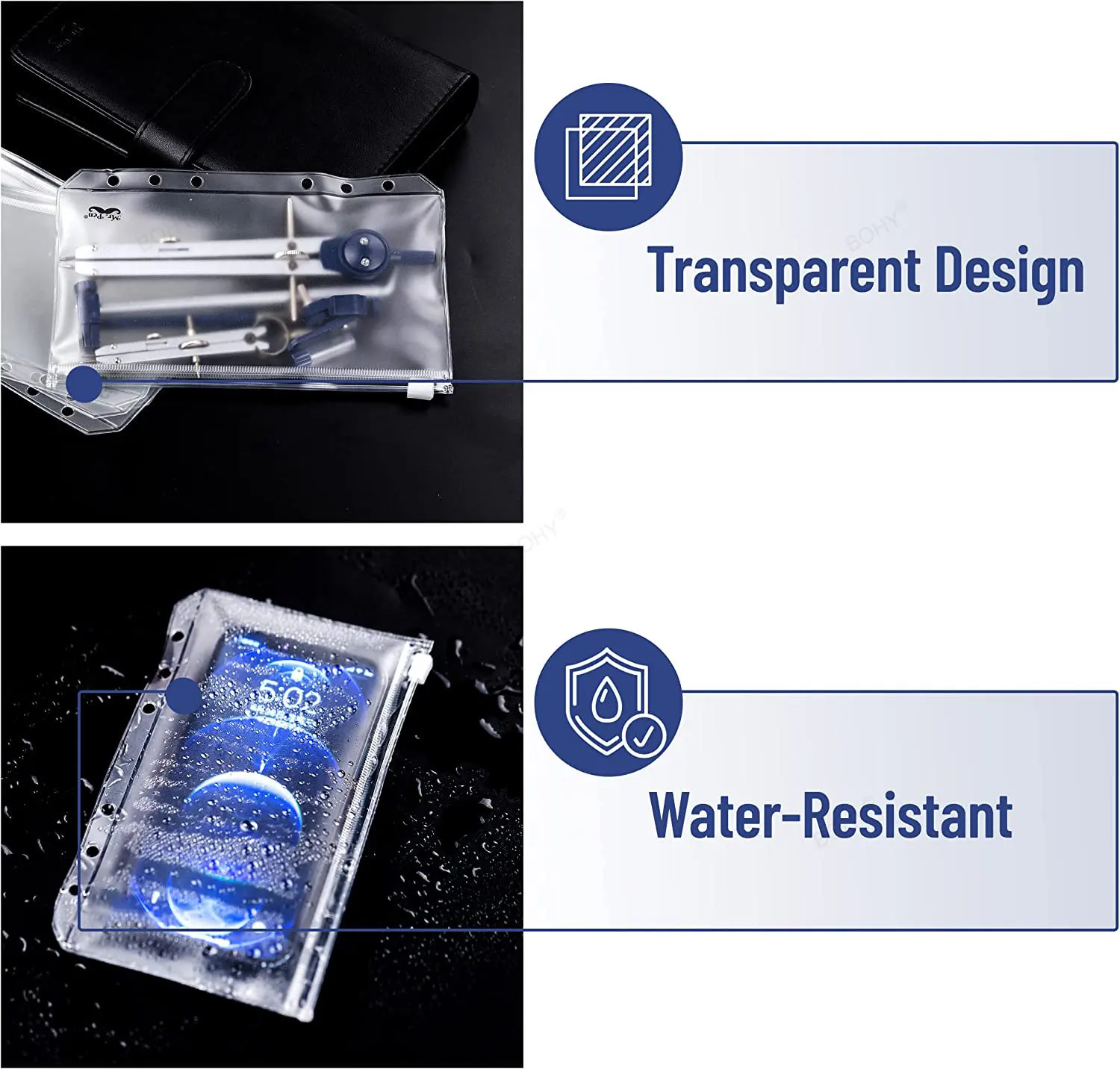 ♡Quick viewBinder Pockets A6 6-Hole Zipper Binder Pockets Waterproof PVC Cash Budget Envelopes Loose Leaf Bag For Binder Notebook Planner48406 VNDHot★★★★★★4.8
