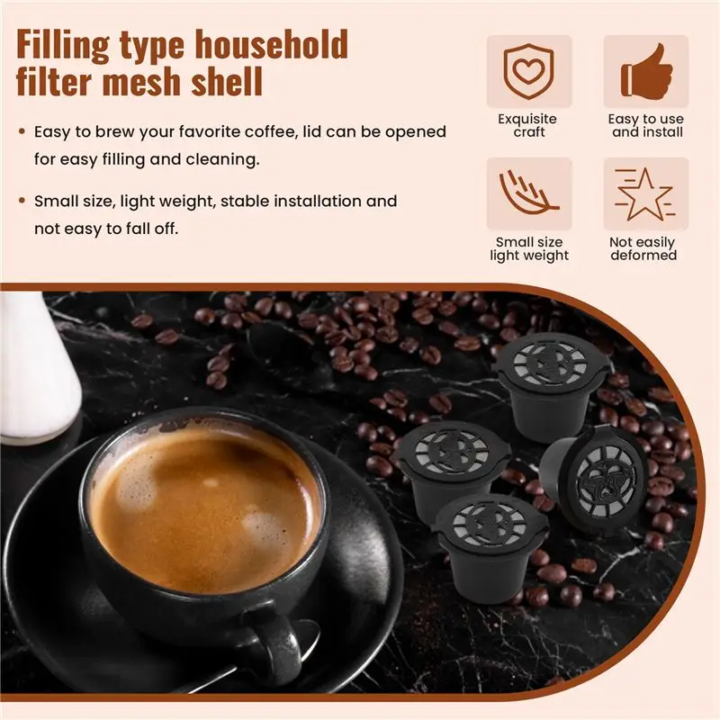 B01C-5 Reusable Nespresso Capsules Refillable Coffee Capsule Filter With Nespresso Coffee Machines With Coffee Spoon Brush - TopDealBox