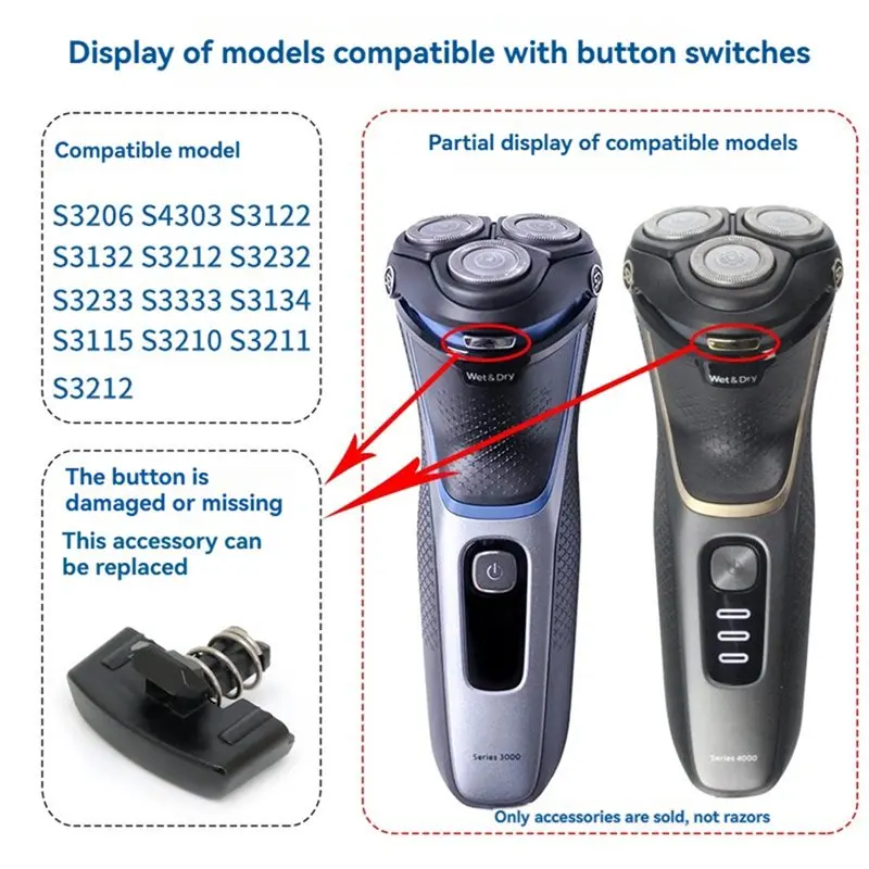 B06B-For Shaver Base Button Switch Replacement- Snap-In Spring Fits Models S3206 S3122 S3132 S4303 - TopDealBox