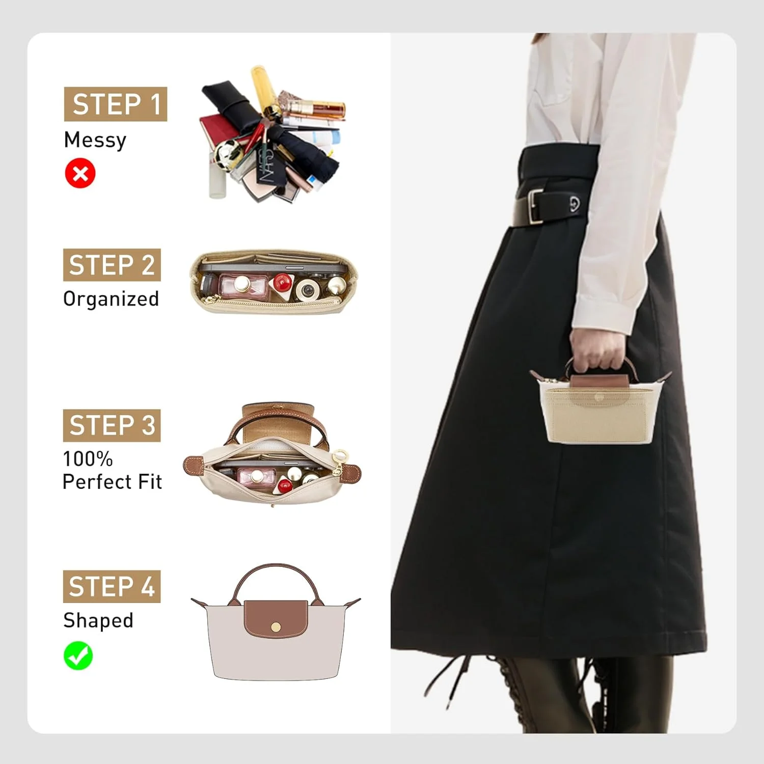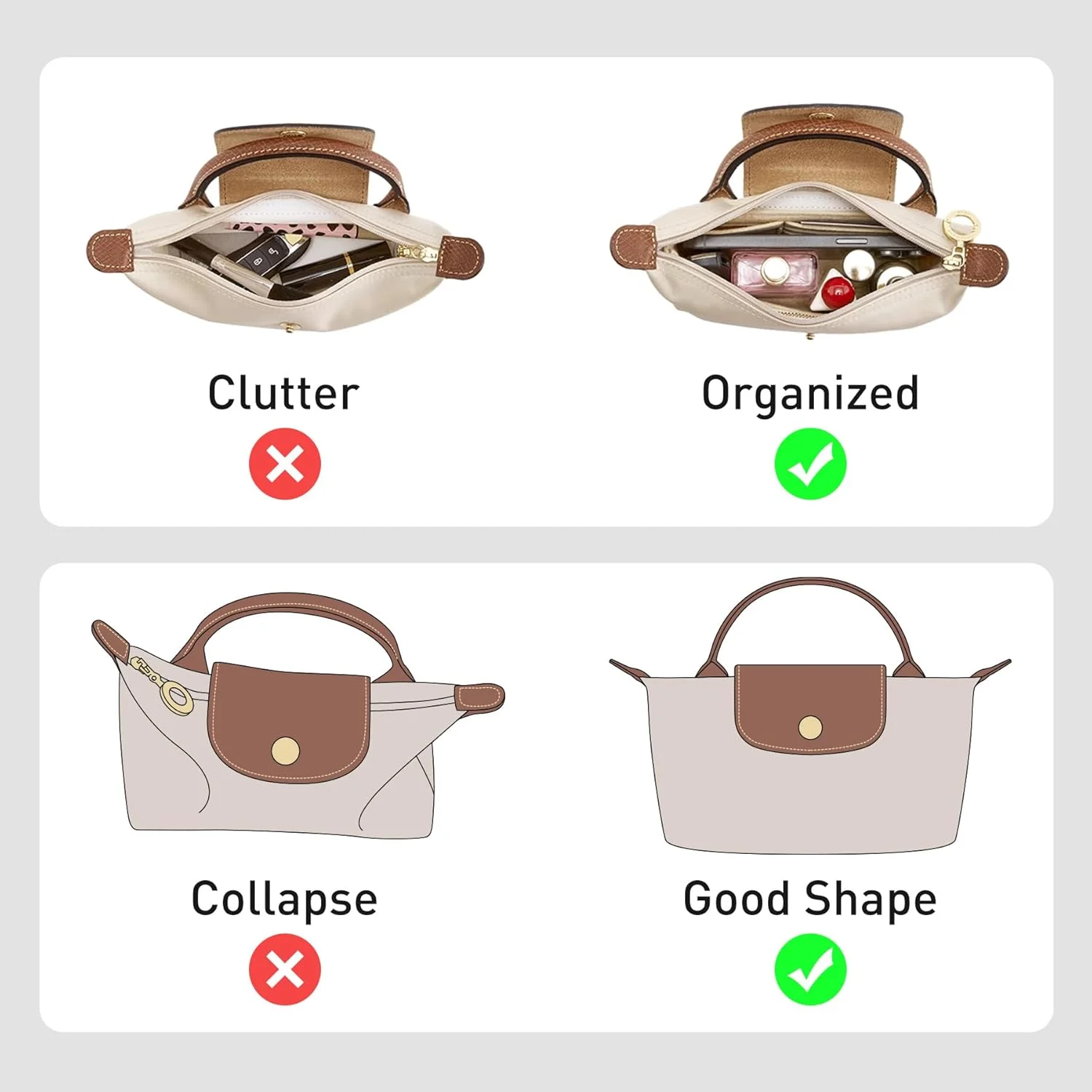 ♡Quick viewBag Organizer for LONGCHAMP Mini Tote Timid Bag Storage & Finishing Inner Bag Liner Handbags Insert Organizer Fit Mini Size62478 VNDHot★★★★★★4.8