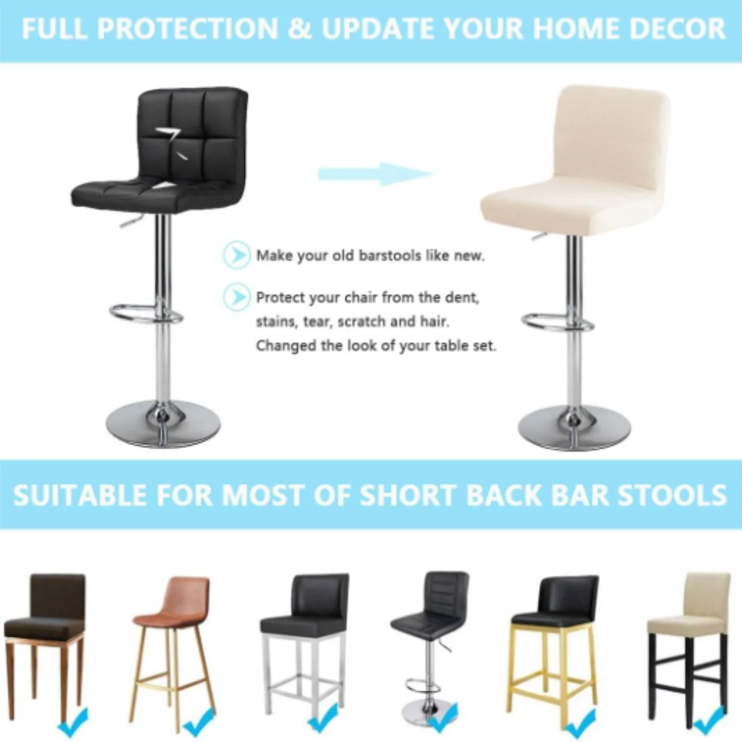 Bifaunvogel - Set of 4 Jacquard Waterproof Backrest Bar Stool Covers for Dining Room, Square Swivel Chair Slipcovers - TopDealBox