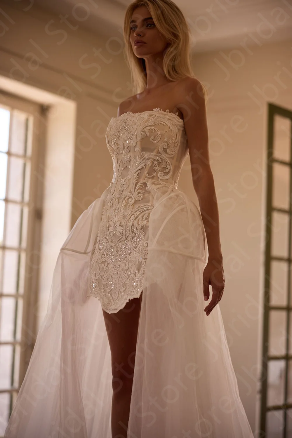 ♡Quick viewKyoto Customized Pleated Lace Flower Sheath Wedding Dress Strapless Detachable Train vestidos de novia Exquisite Evening Dresses2546474 VNDHot★★★★★★4.9