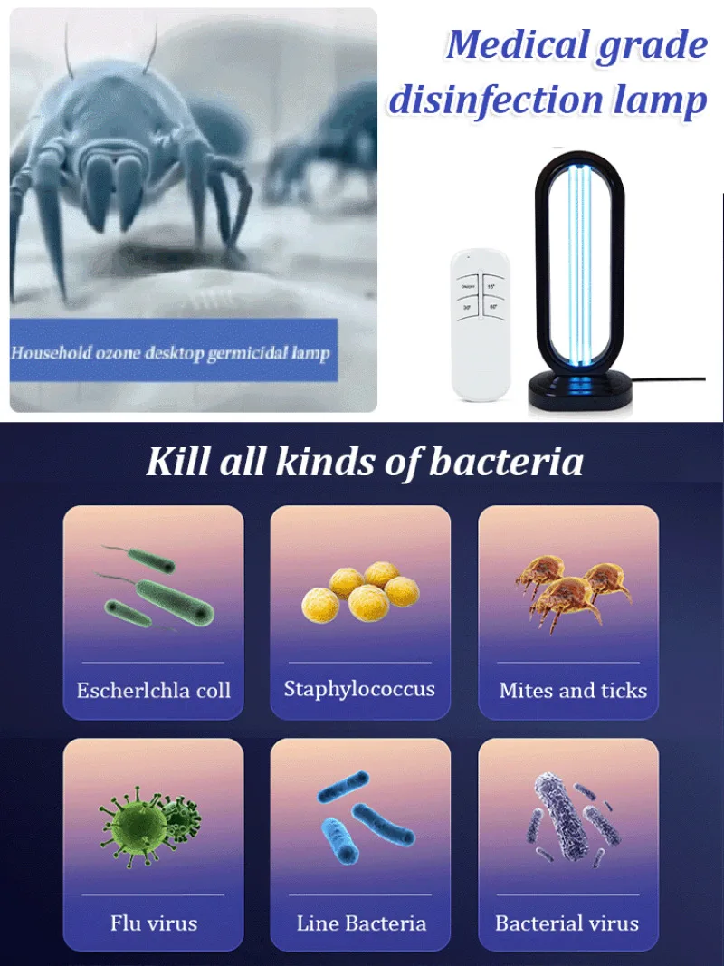 Desktop Folding Remote Control Ultraviolet Sterilization Lamp Desktop Ozone Sterilization Lamps 110V220V38W Ozone Sterilization - TopDealBox