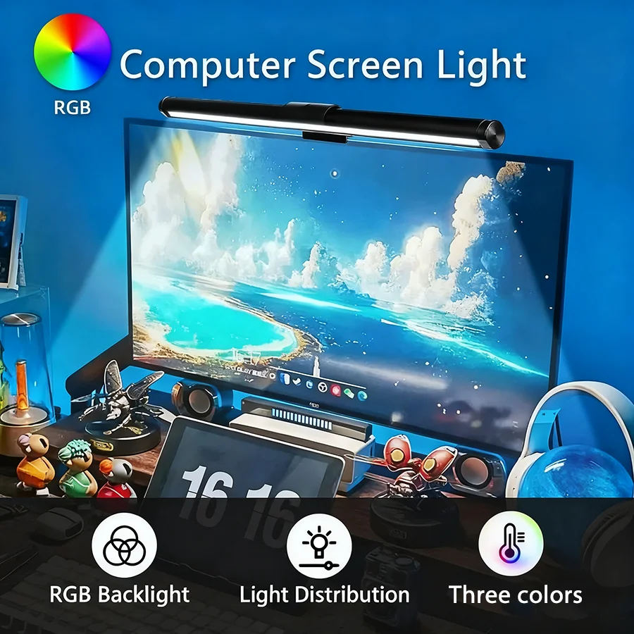 ♡Quick viewPC Display Screen Hanging Lamp RGB Anti Blue Light Eye Protection Lighting Seamless Bracket Light Learning Game Atmosphere Light693899 VNDHot★★★★★★4.9