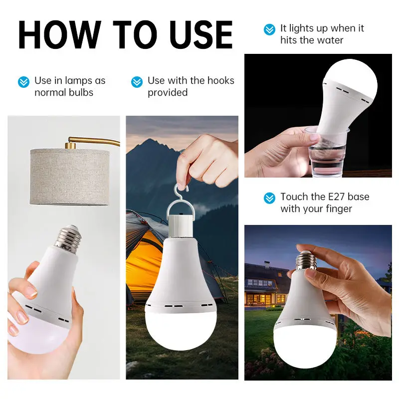 ♡Quick viewLED Bulb Light Smart Charging Chip Power Failure Emergency Home 18650 Battery Flicker-Free with Hook Detachable Emergency Bulb126621 VNDHot★★★★★★4.8