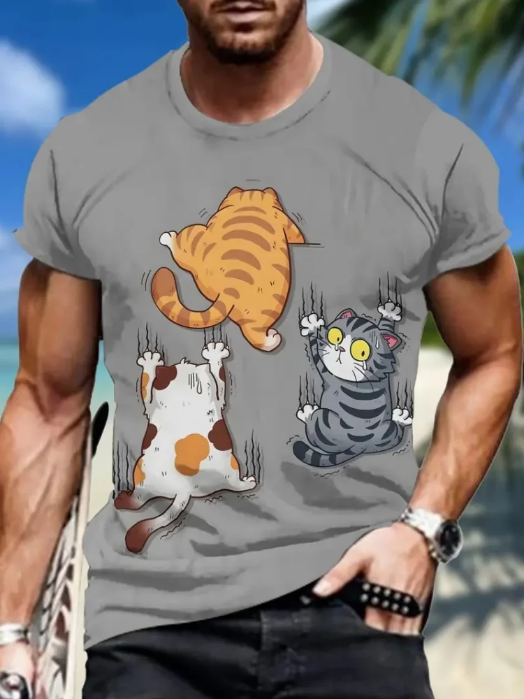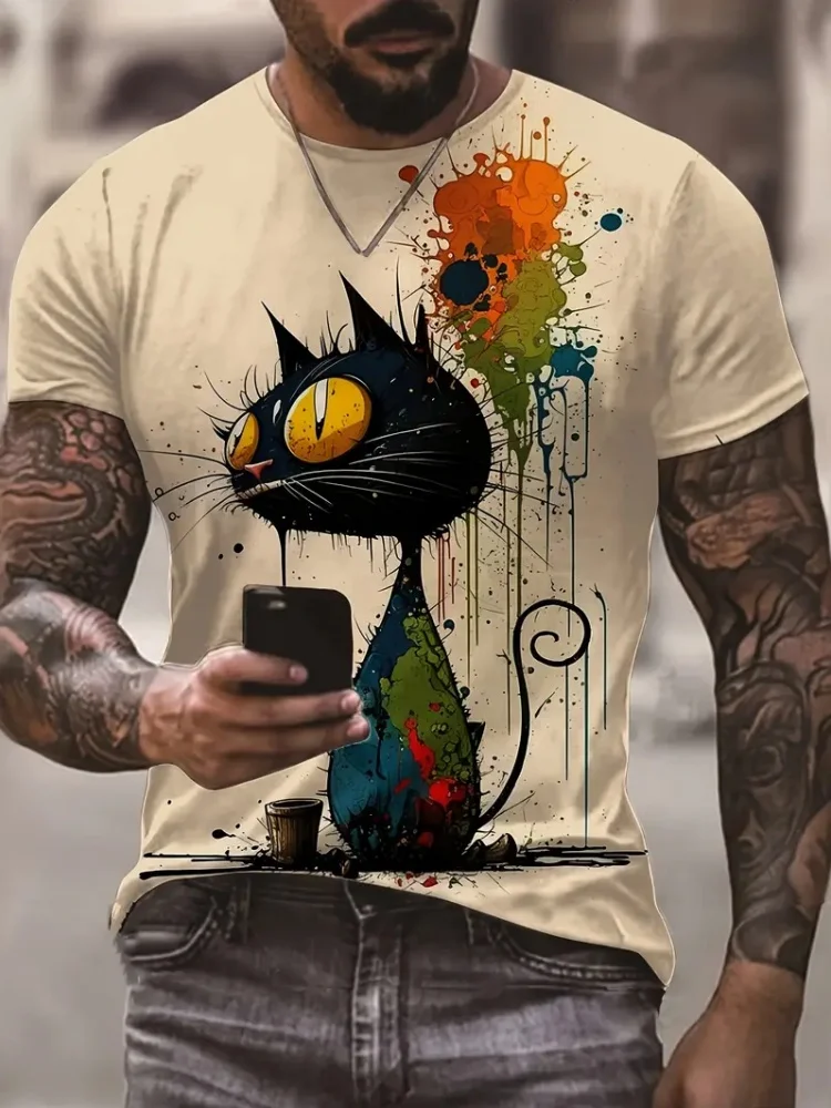 Fashion Sketch Animal Graphic Men T-Shirts Cats 3D Print Oversize Short Sleeve T-Shirt O-Neck Casual Men Women T-Shirt Clothing - TopDealBox