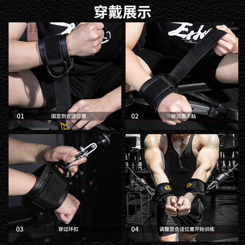 Fitness wrist strap with adjustable D-ring support cuffs, gym strength training buckle pulley, sports protection safety belt - TopDealBox