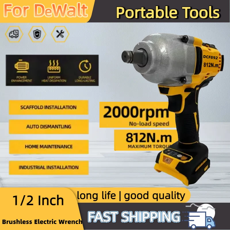 For Dewalt DCF892 1/2 Inch Brushless Electric Wrench 812N.m Cordless Impact Driver High Torque 3 Speed Auto Repair Power Tools - TopDealBox
