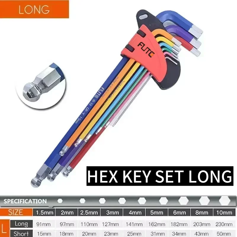 FUTE Allen Key Set L Wrench Kit for Allen Screw 9PCS Long Arm Hex Key Set 1.5mm To 10mm Hex Spanner Hand Tools Bicycle Repair - TopDealBox