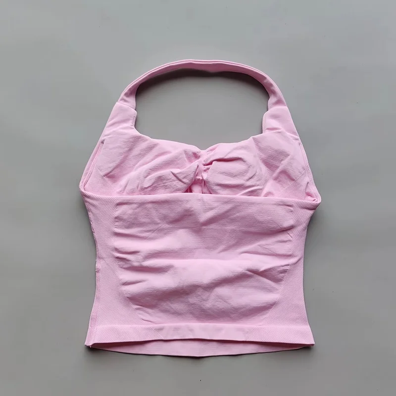 Halter Top Strappy Bra Shorts Set Yoga Stretch Gym Set Women Workout Clothing Seamless Backless Vest Hip-Lifting Leggings Shorts - TopDealBox
