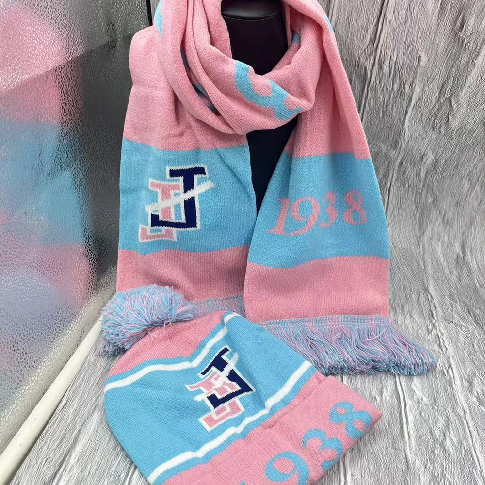 ♡Quick viewJack and Jill light blue light pink sorority letter 1938 knitted scarf hat set331318 VNDHot