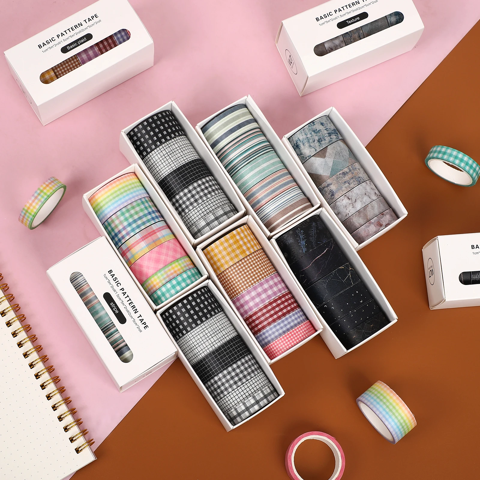 JIANWU 6 Cái/bộ Cơ Bản Hoa Văn Đá Cẩm Thạch Kẻ Sọc Sọc Trang Trí Washi Băng Bộ DIY Nền Sổ Lưu Miếng Dán Đắp Mặt Nạ Băng Kawaii - TopDealBox
