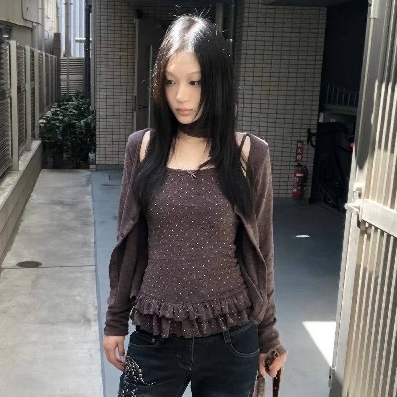 ♡Quick viewKarrram Japanese Y2k Fake Two-piece Knitted Tops Trashy 2000s Hooded Jacket Vintage Harajuku Knitwear Grunge Aesthetics American618552 VNDHot★★★★★★4.6