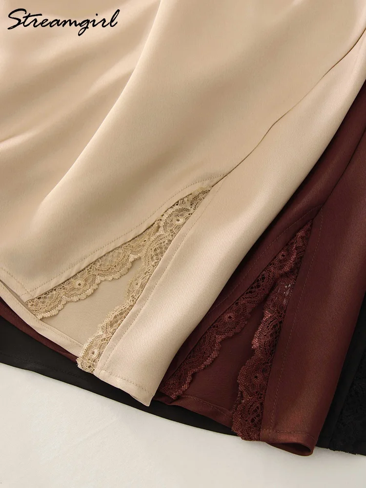 ♡Quick viewMidi Satin Skirts Women Luxury Summer Black Formal Silk Office Skirt With Slit A Line Green Midi Skirt Burgundy Women Elegant490783 VNDHot★★★★★5.0