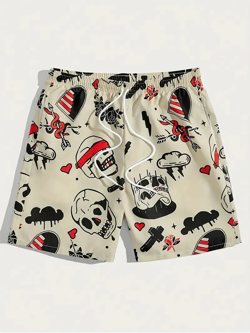 Men's Summer Boutique White Dove Element Printed Pattern Quick Drying Shorts Men Fashion Trend Casual Comfort Ultra Thin Shorts - TopDealBox