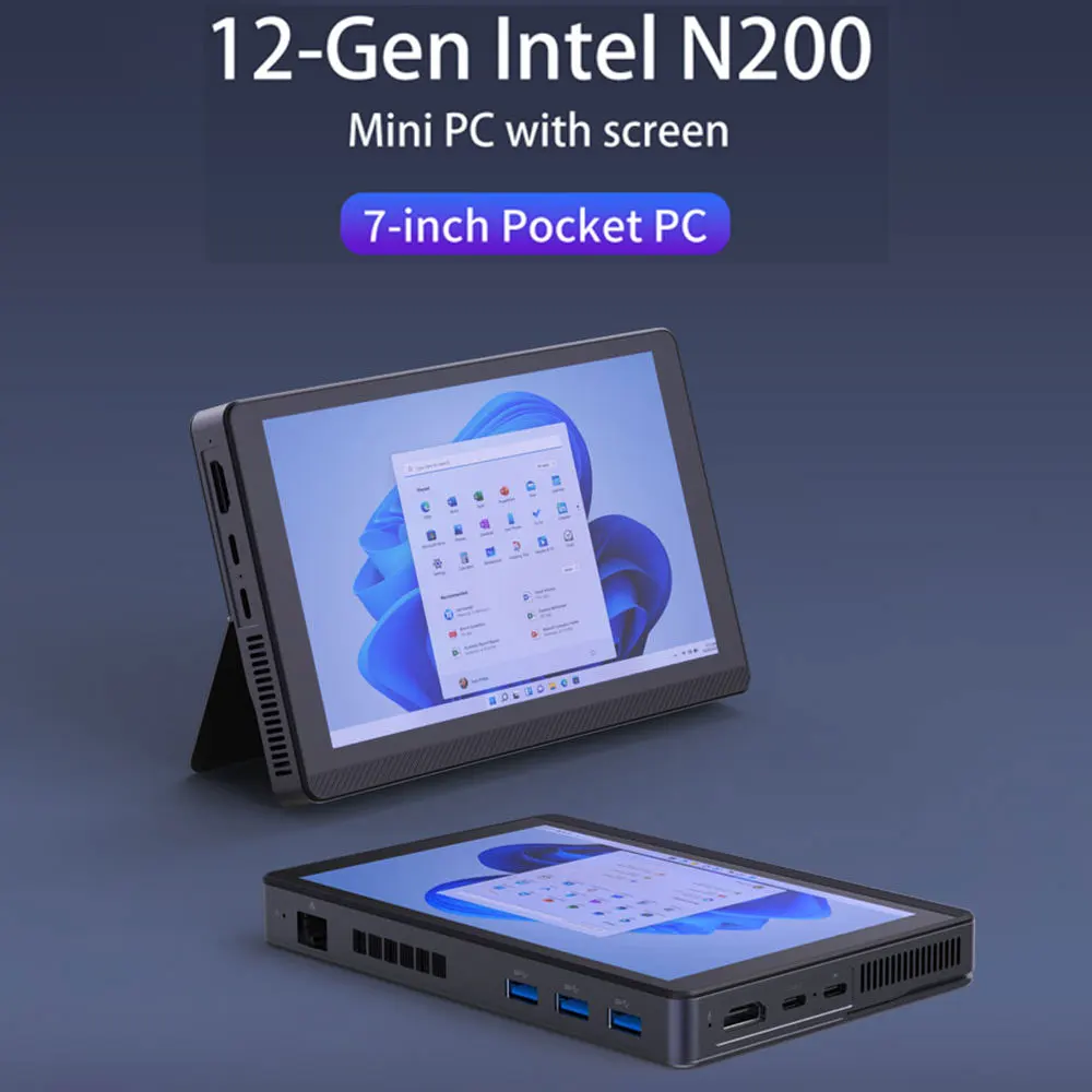SIBOLAN 500H Mini PC Intel N150 N200 N305 CPU 7-Inch Monitor 2.5G LAN 16G DDR4 Windows 11 Pro WIFI6 BT5.2 Mini Desktop Computer - TopDealBox
