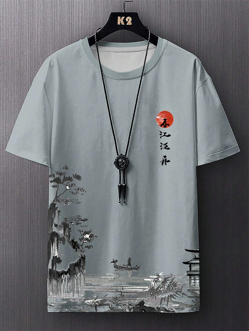Simple Fashion Ancient Style T Shirts For Men Summer Trendy Crew Neck 3D Printed T-Shirts Loose Streetwear Harajuku Kids Tees - TopDealBox