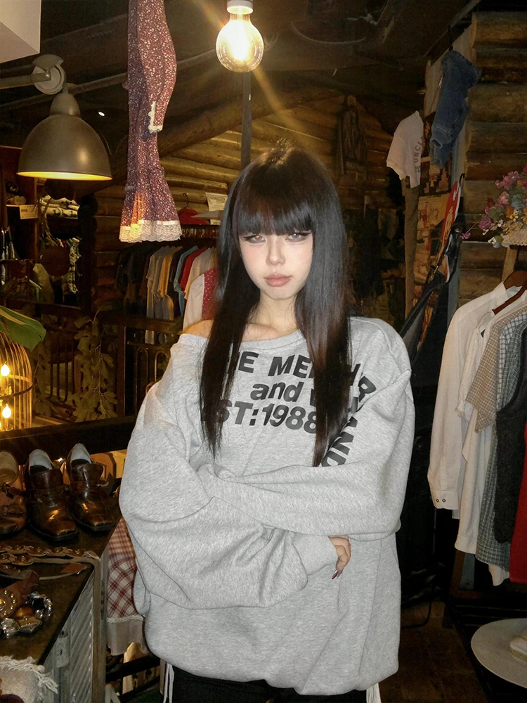 ♡Quick viewTawaaiw Casual Off Shoulder Y2k Hoodie Solid Loose Long Sleeve Harajuku Autumn Tops Women's Sweatshirts Chic 2000s Streetwear411261 VNDHot★★★★★5.0