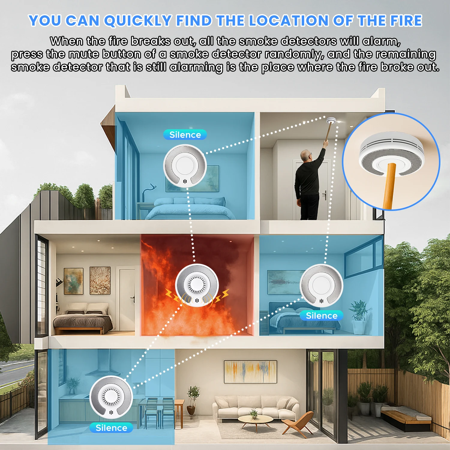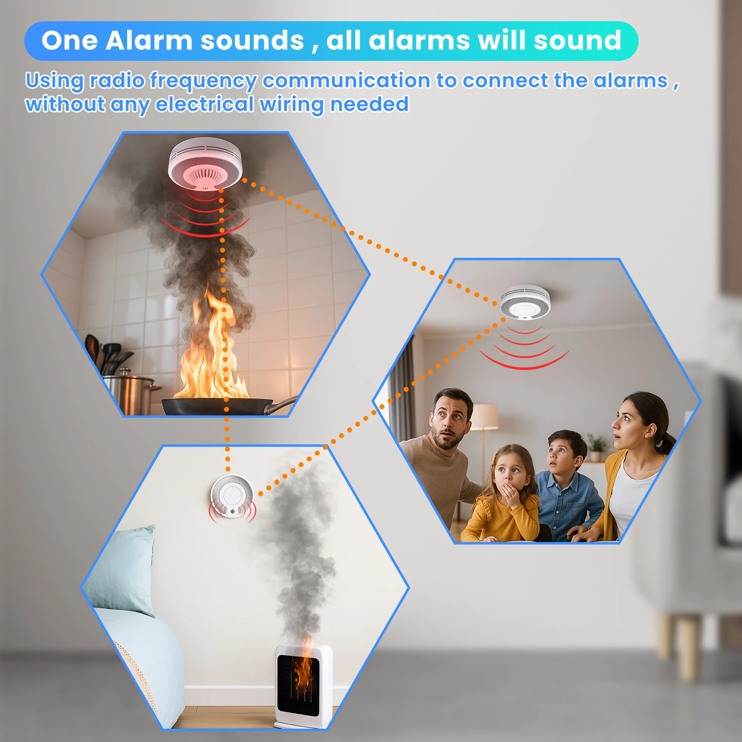 ♡Quick viewWireless Interlinked Smoke Alarm Detector with Sealed 10-Year Battery, Wireless interconnected Smoke Detector, CE/UKCA, VS02F585636 VNDHot
