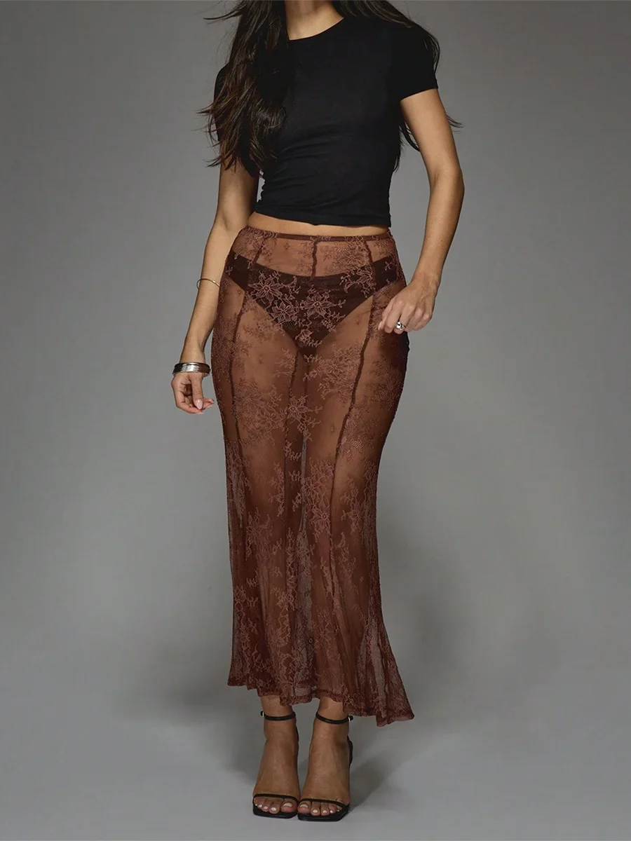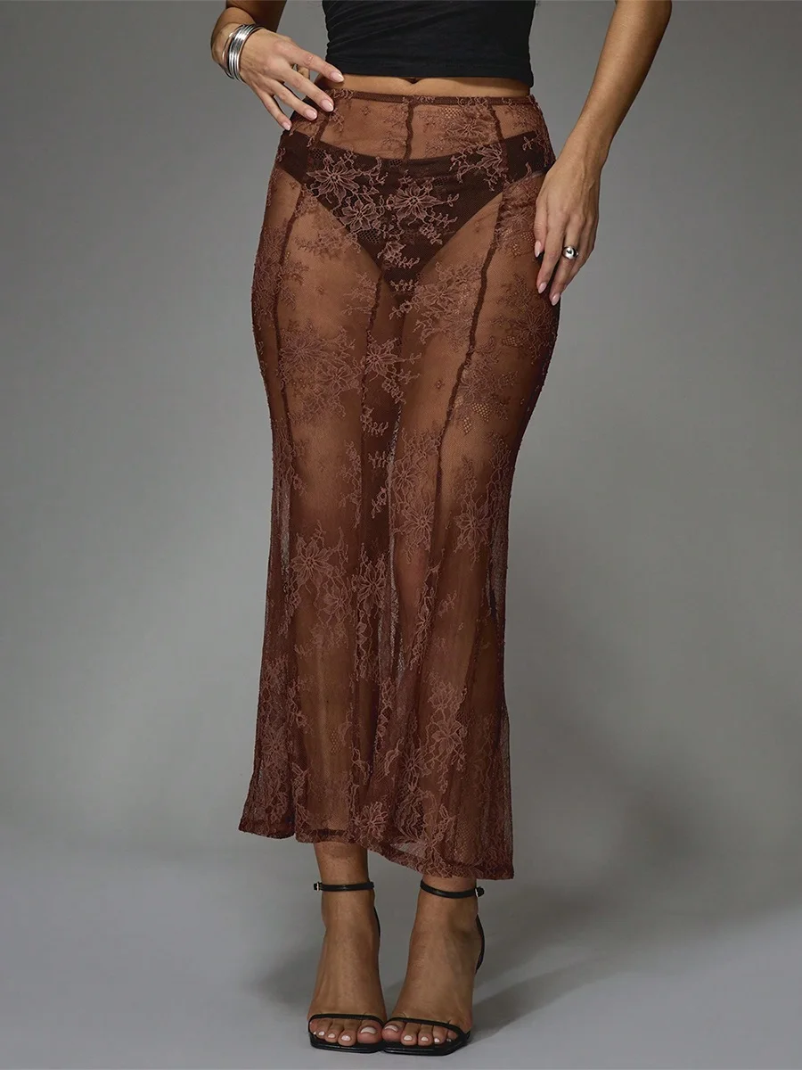 β‘Quick viewTrendix Women Patchwork Lace Skirts 2025 New High Waist Slim Hollow Out Maxi Skirts Autumn Brown Fashion Party Club Boho Skirt487012 VNDHotβ β β β β β 4.7