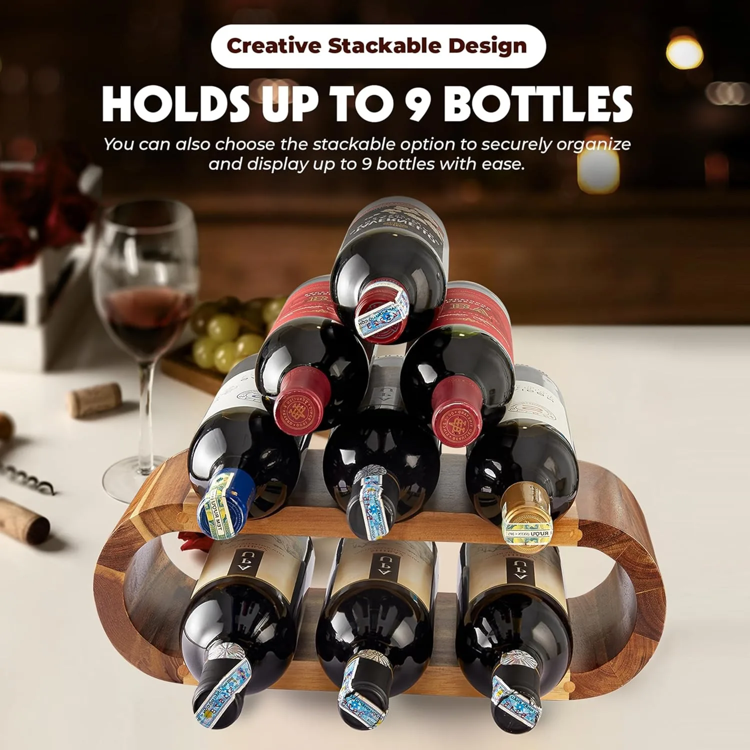 Wooden Wine Rack Wine Cellar Storage Water Bottle Organizer Wine Stand Holder For Bar Party Home Countertop Cabinet Inserts - TopDealBox