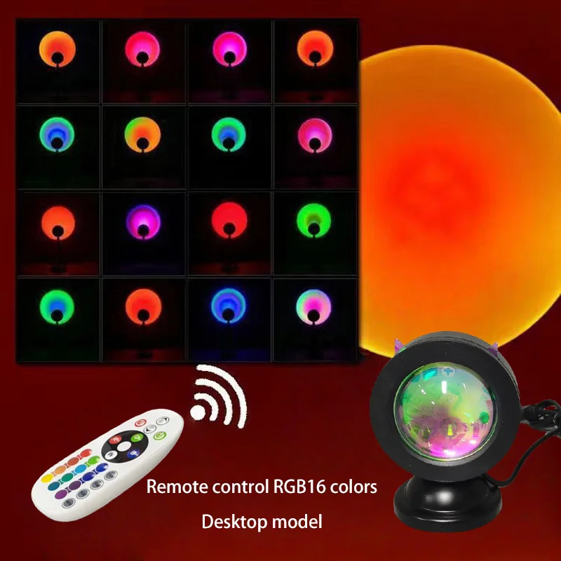 ♡Quick viewSunset Projection Light 16-Color Spectrum Vibrant USB Remote Control Dynamic Color Changing LED Atmosphere Light Creative Home171557 VNDHot★★★★★5.0