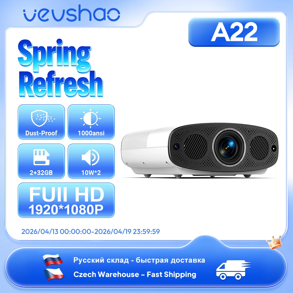 ♡Quick viewVEVSHAO A22 Full HD 1080P Projector 4K 1000ANSI Android WiFi Auto Focus 10W*2 Home Theater Projector for Office Meeting Video6706512 VNDHot★★★★★★4.8